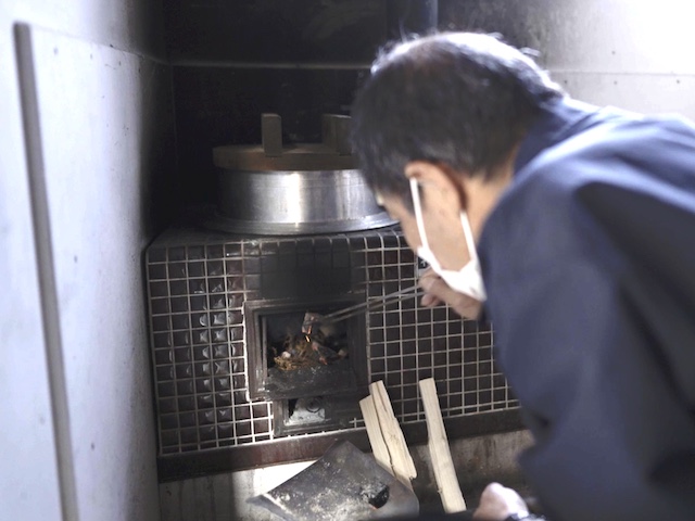 前日の夜に囲炉裏をしまう際、大きめの熾炭を灰で埋めておく事で、翌朝まで熾炭の火を保つ事ができた。