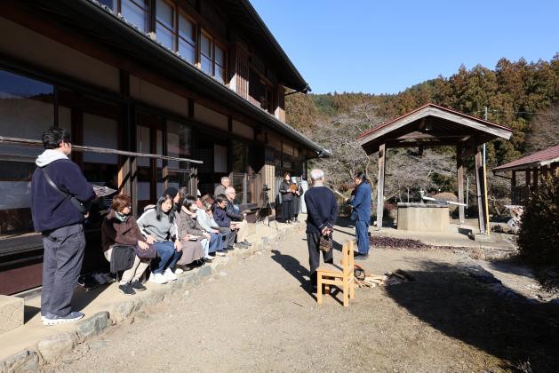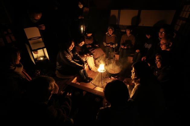 会場の名栗すこやか村は明治初期に建てられた古民家を利用した宿泊施設で、囲炉裏やかまどが現存する山村文化の歴史を伝える文化財的施設である。通常は囲炉裏やかまど、灯火器の使用は禁止の施設であるが、管理人様やオーナー様との交渉により、当イベント限定で特別に利用の許可を頂く事ができた。