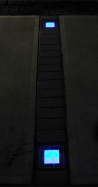 ソーラーLEDブロックの効果として、震災などにより電源の供給が断たれた場合でもLEDブロックが発光する。人を誘導