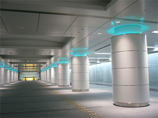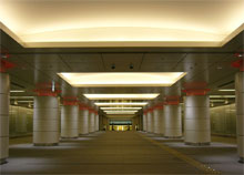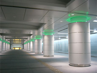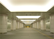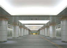 照明演出として、地下空間に自然光を模した間接照明にて時間の移り変わりを自動制御にて演出しています。