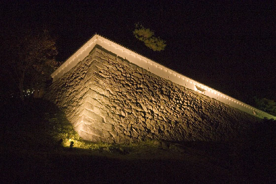 この公園のライトアップにおいては、単に光をあてる照明ではなく、そこに何が行われて来たかを表現することに主眼を置き、歴史的・文化的特性を生かした魅力ある景観づくりに貢献出来るような光の景となるよう、ライティングデザインコンセプトを「歴史の礎・四季の移ろい」としました。歴史の刻ませた静的景観と季節の変わりゆく動的景観で構成される、景観に合わせ光の質に変化を持たせる、霞ヶ城ならではの光景づくりを目指しています。