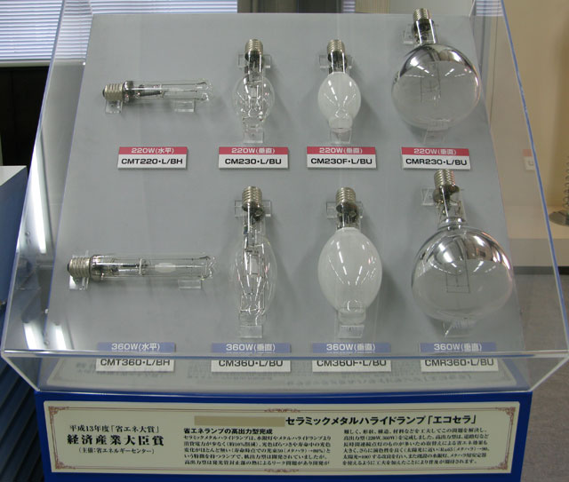A1. 省エネルギー製品により、地球環境改善に取組んでいます。平成12年に高効率・長寿命ランプ『エコセラ』(セラミックメタルハライドランプ)を発売しました。