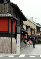 京都市が「歴史的景観保全修景地区」と指定した花見小路周辺は、お茶屋が並び古都らしい情緒の残る、祇園と呼ばれる地域です。