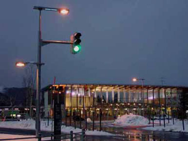 照明柱は昼間及び夜景時の景観を新駅舎にマッチさせた景観性の高いデザインになっています。
