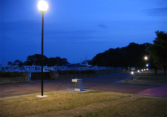 グリーン広場、海岸沿いの低ポール灯と一般ポール灯