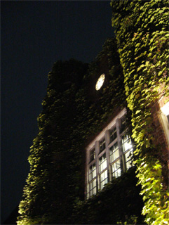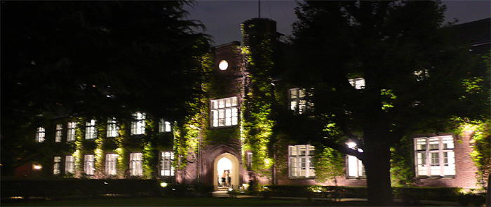 立教大学モリス館は蔦におおわれた赤レンガが印象的な建物で、池袋キャンパスのシンボルともいえる本館。毎年開催されている年末のイベントに伴い、モリス館のライトアップ用器具を設置する事になりました。ライトアップは通年行われ、夏期は白色系(3500K)の光色を採用しレンガ造りの校舎を包み込む蔦の緑を鮮やかに、冬期は暖色系(3200K)の光色を採用しレンガのテクスチャーを暖かく照らします。