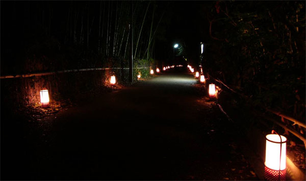 各場所から場所つなぐ道には、京都ならではの伝統産業を生かした様々なデザインの行灯が設置され、 そこから漏れる電球の優しい光が私達の歩く道を明るく照らし、歩くための光と景観の光を作り出していました。