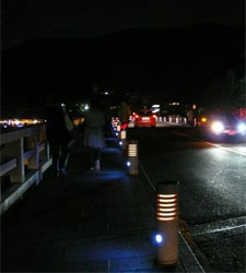 平成17年2月に設置された道路の照明施設は、桂川の流れを利用したミニ水力発電によるLED常夜灯でゆるやかに色が変化し、光の演出とともに行き交う人々を安全に誘導していました。