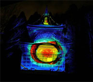 法輪寺では,デジタルアーティストの長谷川章さん演出の「D-K LIVE」が行われました。