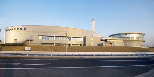 “アクアリンクちば”は、隣接する新港クリーン・エネルギーセンターのごみ焼却エネルギーを利用した屋内スケートリンクと温浴施設です。