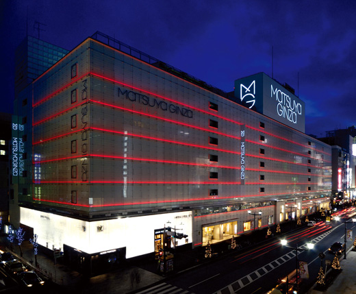 銀座通りに面するファサードのリニューアルに際し、目指したのは表情のある「ホワイトボックス」。エンボスパネルとガラスのダブルスキンによるファサードには布のような表情がかもし出される事を期待しています。昼間は陰影による綿布のような柔らかな表情、夜はカラーLEDにより重力感のない絹のようなクリアな光の表現が生まれました。刻々と変化する街に馴染ながら銀座のイメージとして浸透しています。