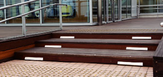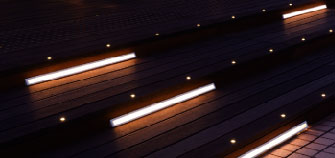 その展望デッキ内のウッドデッキに上がる階段にLEDのライン器具を設置しております。