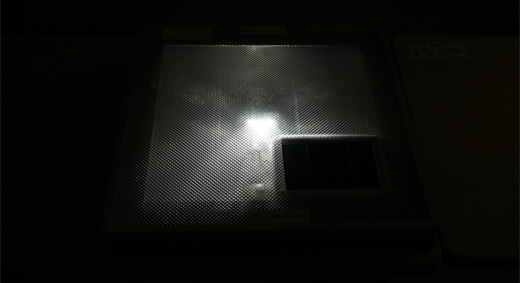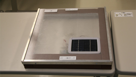 上面はアクリル板で透明。右下はソーラパネル
