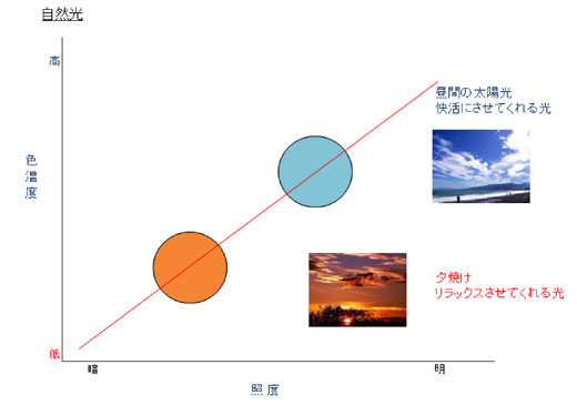 光源の発する光は温度が低いと赤く、温度が高くなるほど赤から黄、白、青白へ変わります。