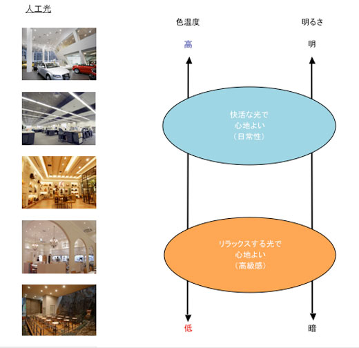 1. 用途の異なる空間で心地よい光が変わってきます。