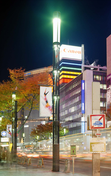 自然光に比較して青味がかる特性が銀座通りに使用する光源として適か、不適かが議論された。ウィンドゥに陳列されている商品の見栄えや歩行者の顔映りを評価した結果、当時開発されて間もないメタルハライドランプを採用することとなった。