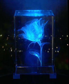 上部グローブには3Dクリスタルのバラが入っていて昼は自然のバラ、夜は光のバラの鑑賞を楽しむコンセプトとして、LEDを用いたモニュメント的な照明を作成した。