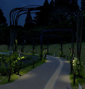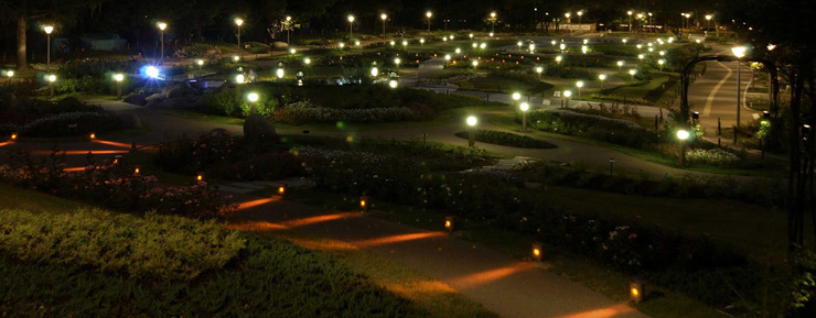 市内で最も歴史のあるバラ園は「世界バラ会議大阪大会2006」展示会場の中核として予定され、その改修に伴い、夜間も楽しいひとときを過ごせるよう、実用性と演出性を兼備えた照明空間となりました。