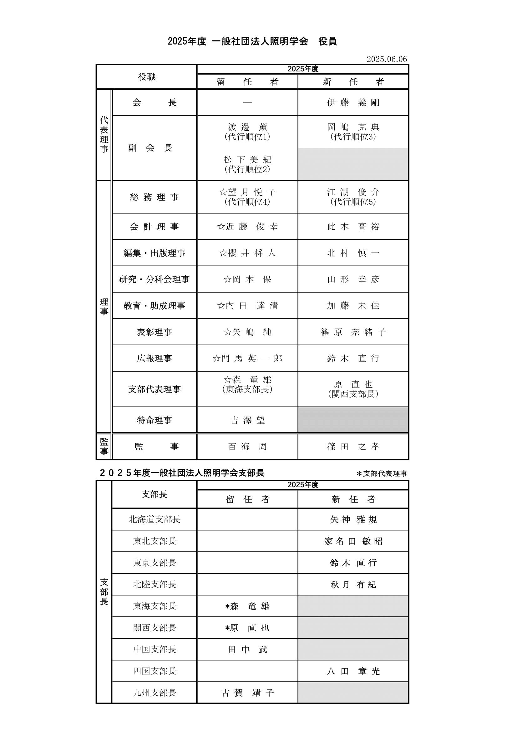 2025年度 (一社)照明学会本年度役員
