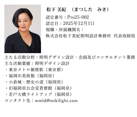 松下 美紀 | まつした みき | 株式会社松下美紀照明設計事務所 |