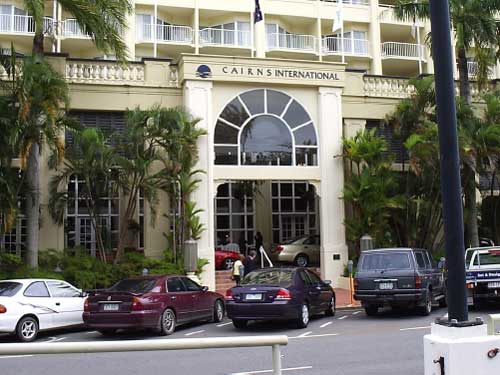 ケアンズはオーストラリア北部の熱帯に位置し、その内陸には熱帯雨林が、海にはグレートバリアリーフがあり、それらは世界遺産にも登録されている。ケアンズはすばらしい自然が手軽に満喫できる観光地、あるいはリゾート地として有名である。また日本人の観光客も多い。大会の行われた7/23~25は現地では真冬に相当するが、日本の春又は秋の気候に近い。大会会場のケアンズインターナショナルホテルは16階建ての、ケアンズのなかでは一番の高層ホテルである(図4)。観光客でにぎわうストリートのすぐ近くに位置しており、ショッピングなどにも便利である。