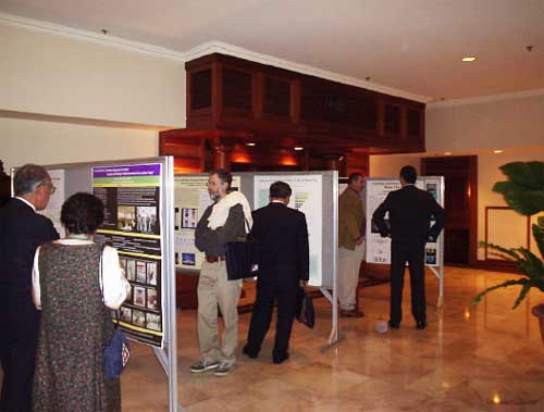 その後、A会議室とB会議室の2会場に分かれてセッションが始まった(図6)。各セッションの座長は、国際組織委員会の委員やオーストラリア・ニュージーランド照明学会の委員などが担当した。著者はLighting Designの座長を担当した。ポスター発表の会場はセッションの行なわれた会議室の前のロビーに設けられ、熱心な討論が行われた(図7)。