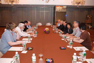 2009年度国際組織委員会は4月24日に、第6回大会の会場であるバンコクのホリデイインシーロムホテルで開催された。南アフリカ代表のGustav Kritzinger氏を除く国際組織委員と、オブザーバーとしてオーストラリア・ニュージーランド照明学会の会長が出席した。タイ、中国、日本の代表委員には通訳が同席した。今回の国際組織委員会のメンバーリストを表3に示す。開催風景を図1に示す。