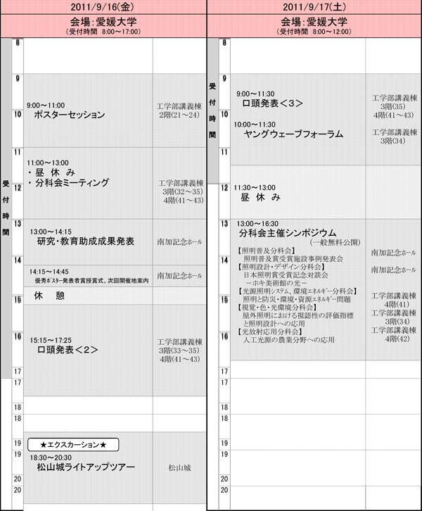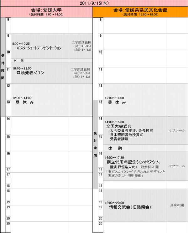ポスター発表ショートプレゼンテーション、口頭発表スケジュール