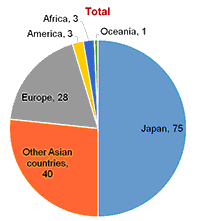 - 国:日本75件、中国25件、フランス8件、イタリア6件、ドイツ4件、米国3件、英国3件、ロシア3件、マレーシア3件 他