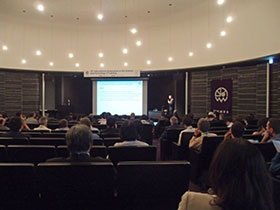 - 22日(日)は基調講演として、QDレーザー代表取締役社長の菅原氏と松下進建築・照明設計室の松下氏に講演をいただき、その後Welcome Receptionを開催しました。