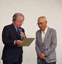 - 27日(金)には、照明学会100周年記念特別講演として、京都大学の野田教授と名古屋大学の天野教授に講演をいただきました。この講演に限り京都大学の学生にも無料開放しました。その後、クロージング・セレモニーにて、1995年に京都で開かれたLS7の副議長であった神谷氏にこれまでのLSへの貢献を感謝し記念品を授与し、また次回LS16開催地が英国であることが紹介されました。